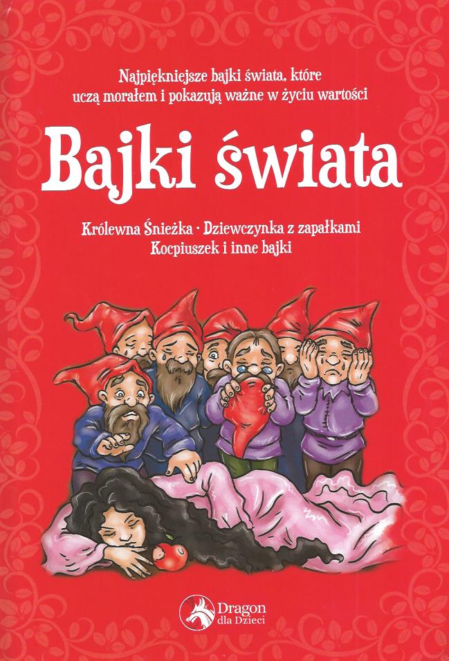 Na okładce: Najpiękniejsze bajki świata, które uczą morałem i pokazują ważne w życiu wartości. Królewna Śnieżka, Dziewcznka z zapałkami, Kopciuszek i inne bajki.